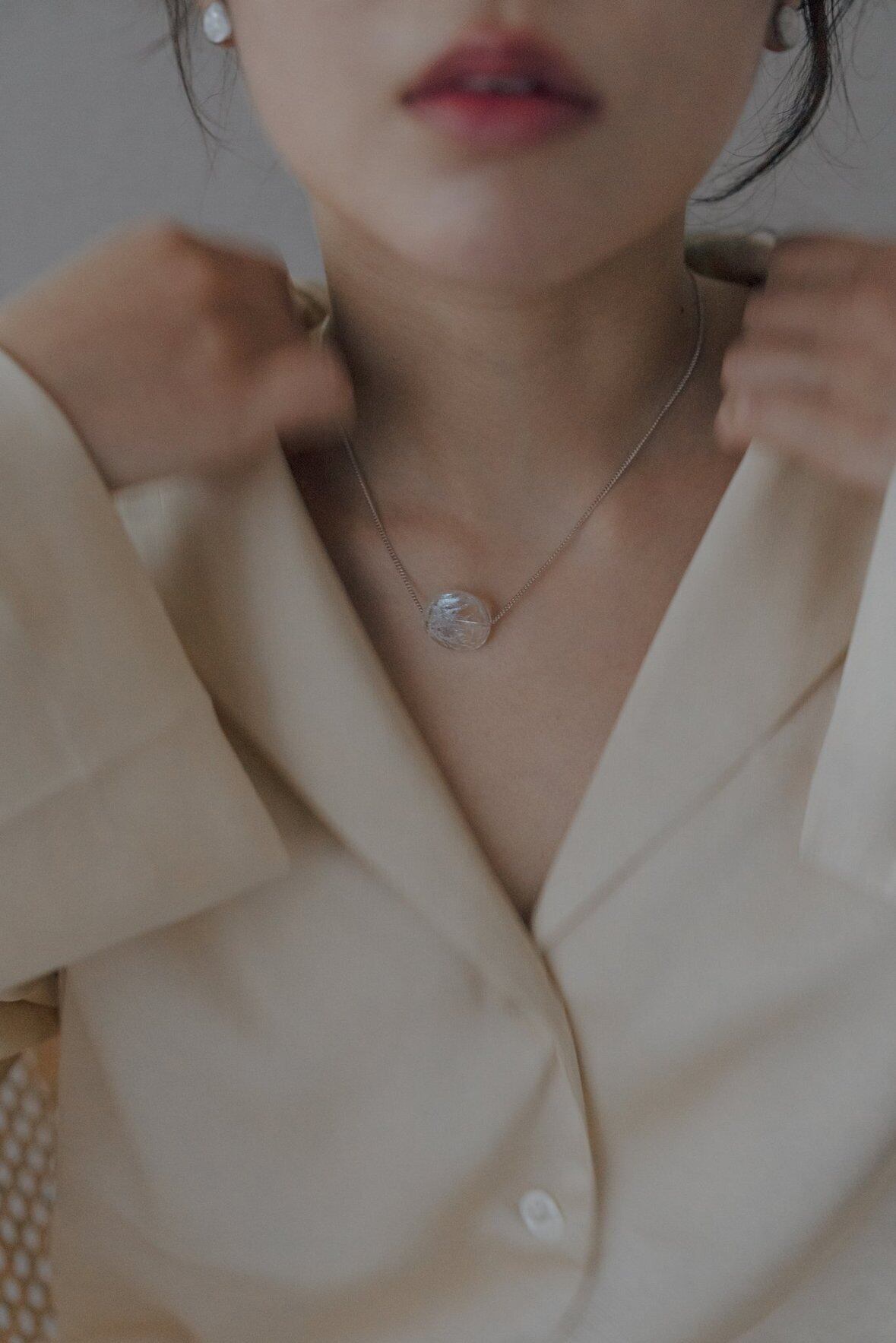 透明パーツの中にジュワッと広がる絵の具の模様が特徴のネックレスです。